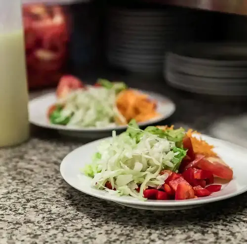 Damit zum Mittagsessen alles perfekt passt, bereiten wir alles vor. Dazu gehört Salate schneiden oder Vorräte auffüllen. Nach einem erfolgreichen Tag reinigen wir gemeinsam unseren Arbeitsplatz.