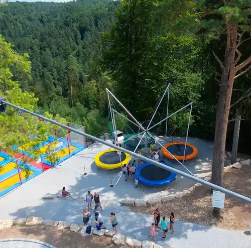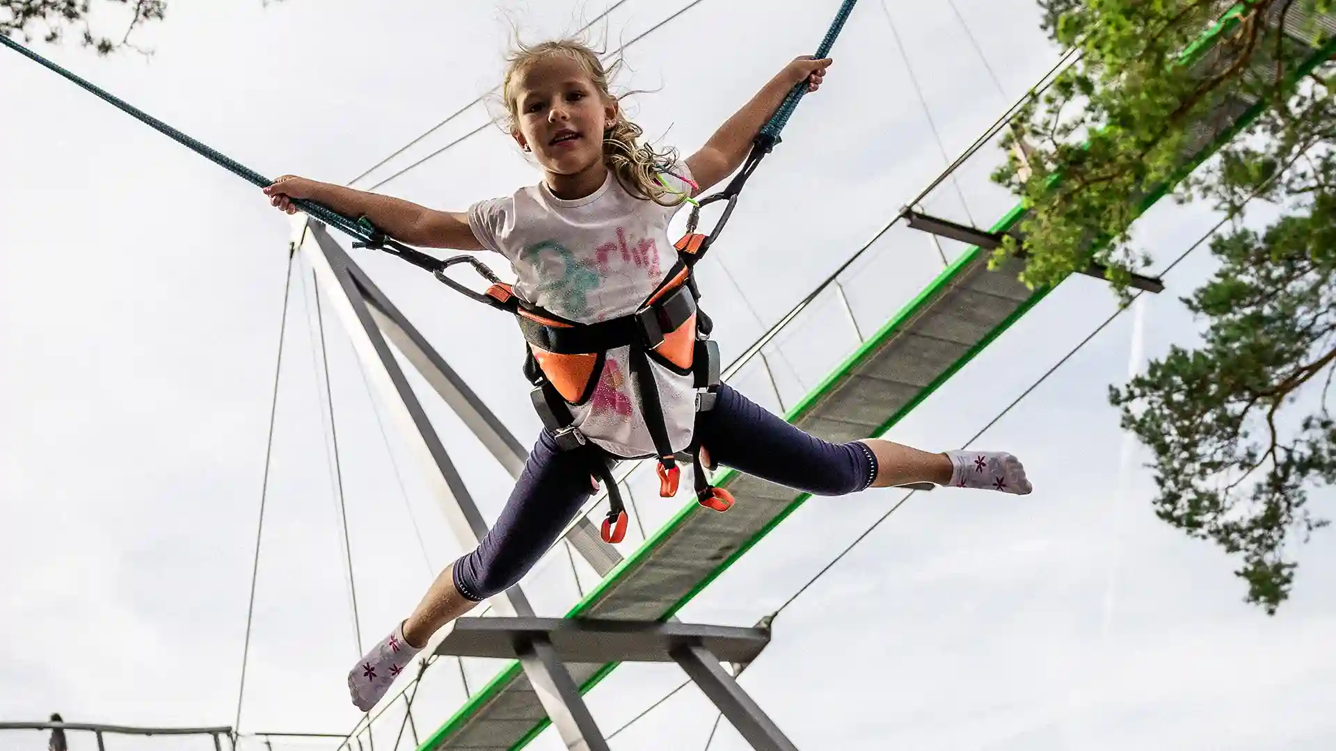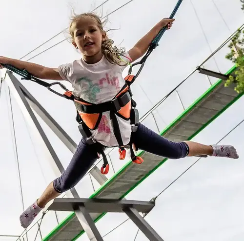 Du willst die Schwerelosigkeit testen? Dann schnalle dich fest an! Bei unserem Bungee-Trampolin fliegst du hoch in die Luft. Wenn du dich traust, sogar mit Looping.