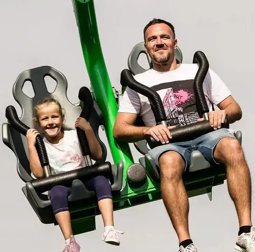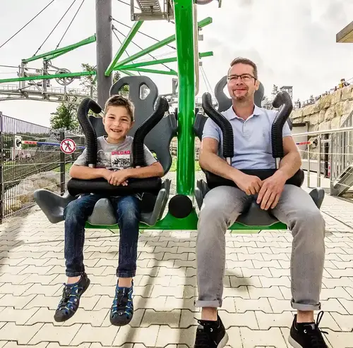 Du willst deine Beine in der Luft baumeln lassen? Dann ist der Hexenbesen der richtige Fahrspaß für dich. Allein oder zu zweit sitzt ihr sicher im Hexenbesen. In den Kurven schaukelst du von links nach rechts. Die Schwerkraft spürst du direkt. Probiere es aus!
